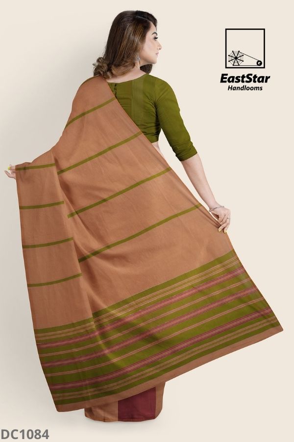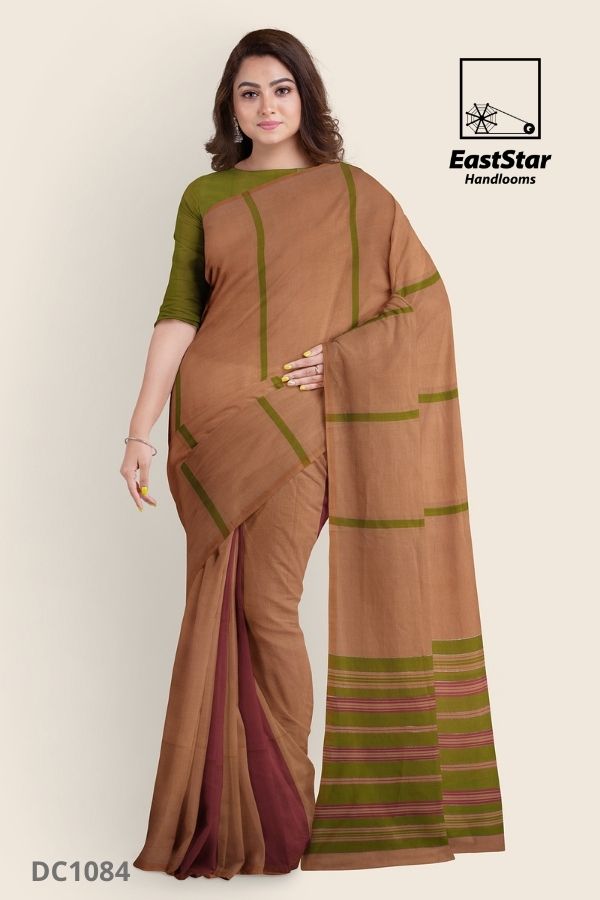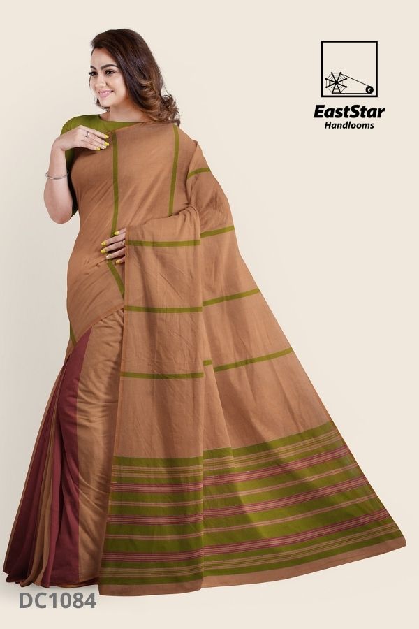 Description East Star presents this airy and lightweight Handlooms saree for those special occasions. This natural fabric settles around you as if they are part of your own skin. This French Beige & olive Brown Combination and woven for those who have a classy taste.