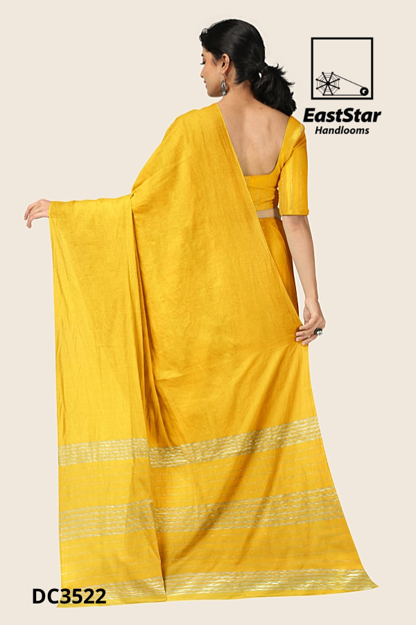 Step into luminous elegance with the Mustard yellow saree EastStar Handlooms is known for—a radiant drape shaped with handloom finesse and timeless charm. This bright yellow saree features neat front pleats and a flowing pallu accented by subtle silver horizontal stripes and a thin silver border, creating a sophisticated silver border yellow saree you can style from day to celebration—your Bright yellow pallu saree EastStar Handlooms essential. A refined mustard yellow saree silver border, mustard yellow striped saree, and yellow saree with silver stripes in one, it offers the bright yellow saree subtle stripes and yellow saree with pallu versatility you crave. Buy mustard yellow striped saree, Order yellow saree silver border, and Buy bright yellow pallu saree—your Silver border striped saree EastStar Handlooms favorite awaits.