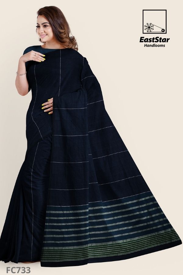 | Description | East Star presents this airy and lightweight Handlooms saree for those special occasions. This natural fabric settles around you as if they are part of your own skin. This Navy Blue & Jungle Green Combination and woven for those who have a classy taste. |