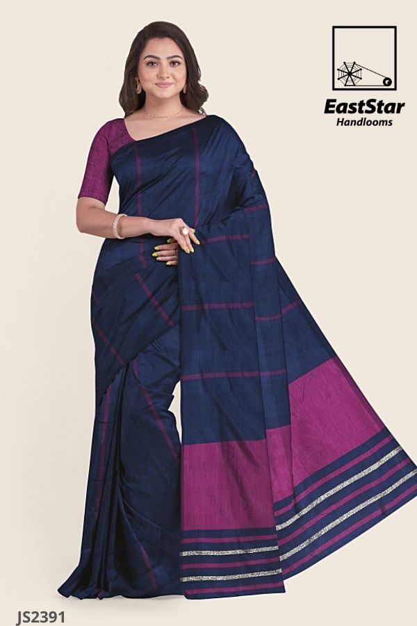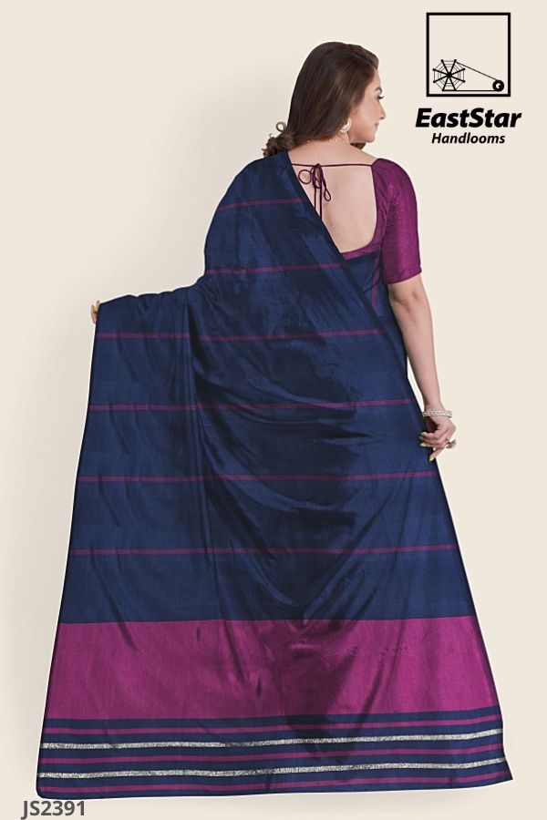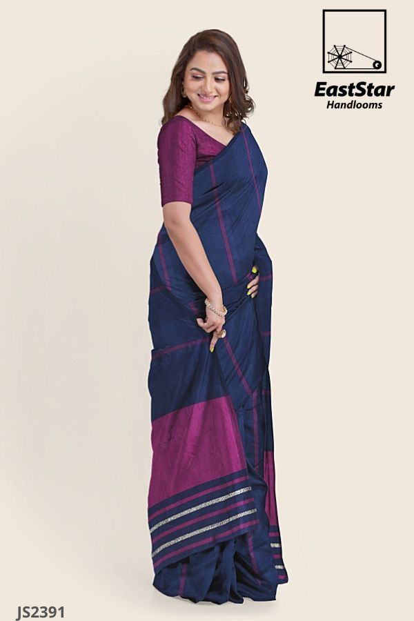 Featuring this handloom silk cotton saree in Navy Blue & Magenta. The fabric is Comfortable, soft in texture, and gives a great fall. The body is adorned with Navy Blue & Magenta and Lovely Pallu, making it an ideal drape for special occasions. |