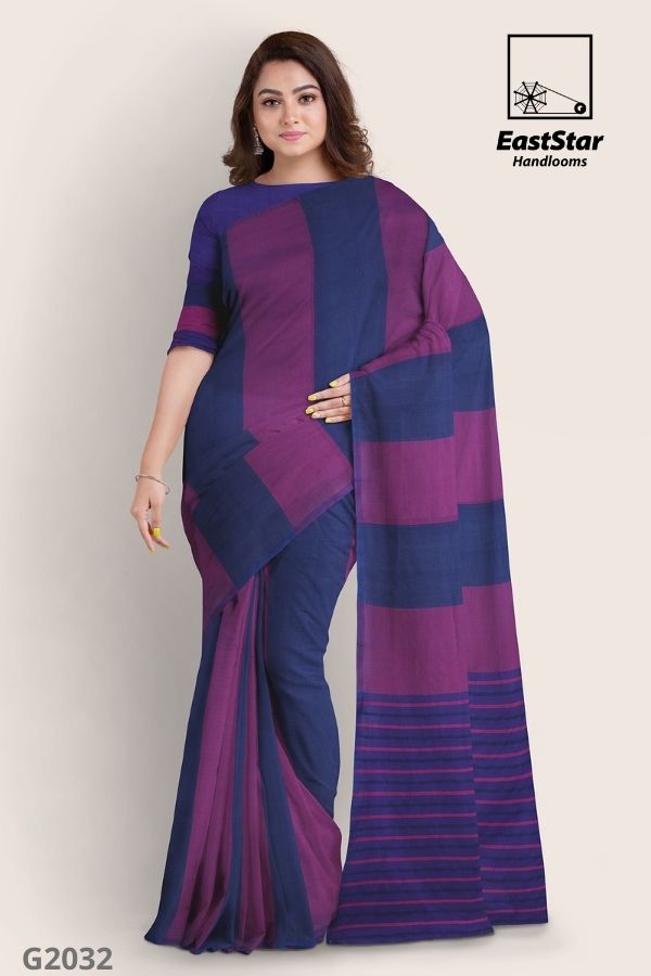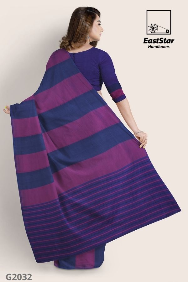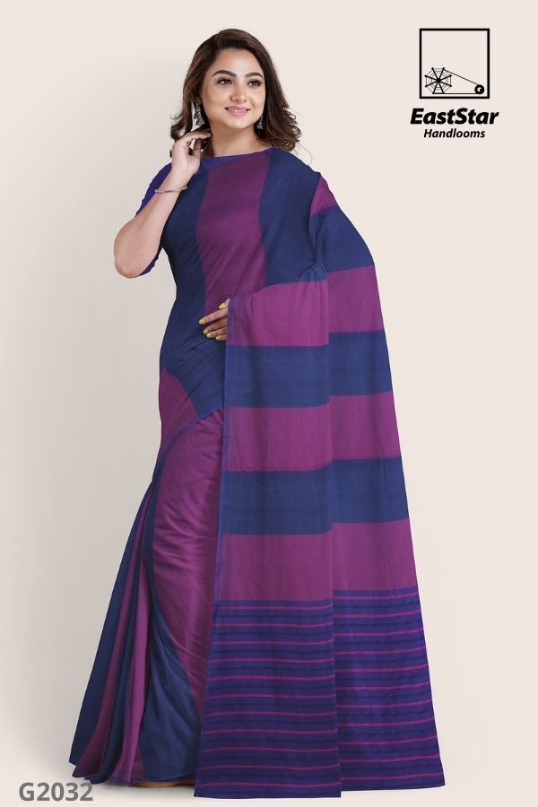 If you are looking for a fine outfit for work, this is another stunning piece! The East Star handloom Glossy cotton saree is woven with Love, but intricate motifs all over the body. This Navy Blue & Magenta color of the saree completes the look. Wear it with handmade Jewelry and sandals to ace the perfect board room look. Navy Blue blouse is as it\’s Shown in the Picture.