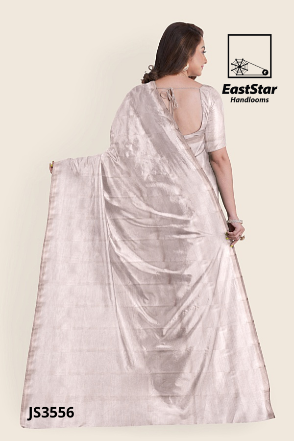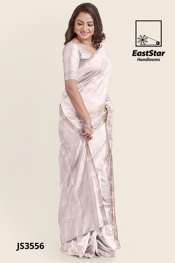 Glide into effortless elegance with EastStar Handlooms JS3556, an off white, pearl beige saree by EastStar with a shimmery light solid drape and a chic thin border. Paired with a matching light solid off white handloom saree blouse — short sleeves, soft V neckline — this pearl beige handloom saree moves beautifully and flatters every celebration. Handloom craftsmanship delivers a fluid, breathable fall and a subtle glow that catches the light, making this shimmery saree from EastStar Handlooms your new signature. Ready to shine now — buy this off white saree with blouse, order the pearl beige handloom saree JS3556, and buy your shimmery light saree online from EastStar today.