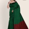 Olive Green & Red Handloom Silk Saree JS410