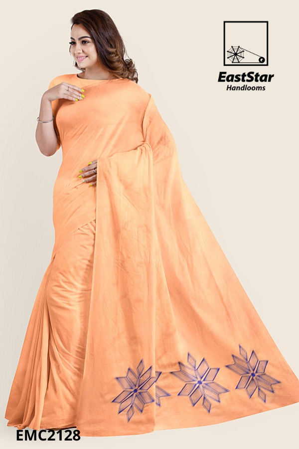Peach Handloom Embroidery Cotton Saree EMC2128