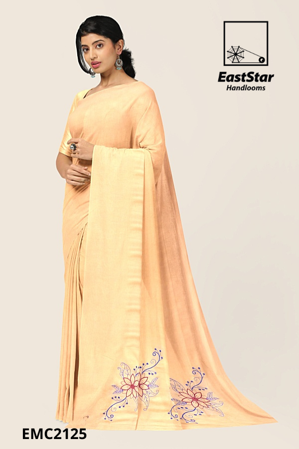Peach Pastel Handloom Embroidery Cotton Saree EMC2129
