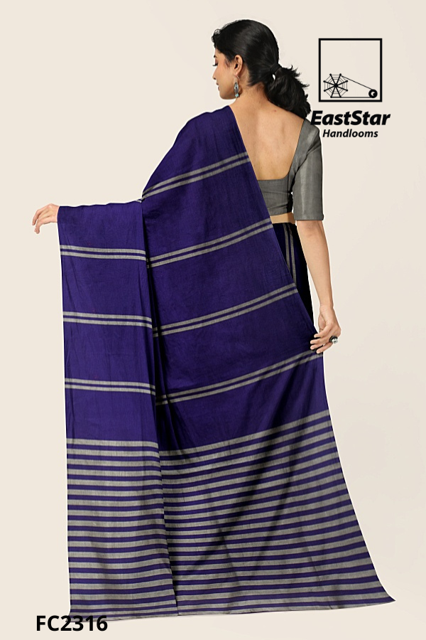 FC2316 by EastStar Handlooms is a deep indigo handloom saree with a refined purple cast and precise gray stripes flowing across the body, finishing in an elegant gray striped pallu. Meticulously handwoven, this purple handloom striped saree offers a fluid, graceful drape and neat pleats that flatter every silhouette, pairing effortlessly with oxidized silver or modern minimal accents. Searching for Indigo handloom saree EastStar Handlooms FC2316, Purple striped handloom saree EastStar Handlooms, or Gray striped pallu saree EastStar Handlooms? Buy indigo handloom striped saree now, Order purple handloom striped saree today, and Buy gray striped handloom saree to make this deep indigo handloom striped saree yours.