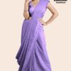 Discover the epitome of grace with our Elegant Purple Saree Collection. This stylish traditional Indian outfit features a solid purple saree paired with a matching deep-neck blouse and capped sleeves. Accentuate your look with its simple, yet premium design complemented by large dangling earrings and a chic bangle. Perfect for any occasion, this saree ensures you exude elegance and sophistication. Order your elegant purple saree online now and step into the spotlight!
