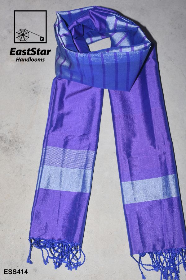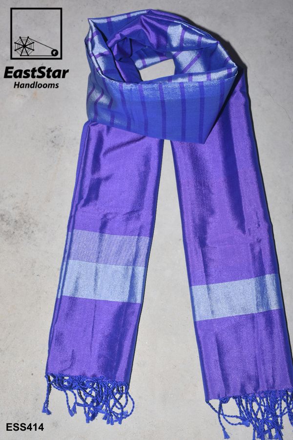 Unveil unparalleled elegance with our Luxury Silk Shawl in captivating purple and blue hues. This Designer Silk Scarf marries sophisticated charm and high-end fashion with its radiant shiny texture and smooth, reflective silk. The stunning alternating stripe pattern is perfectly complemented by blue tasseled fringes, ensuring a touch of playful opulence that elevates any outfit. Whether you’re attending a glamorous event or adding a chic flair to your everyday style, this Elegant Shiny Silk Scarf is your ultimate accessory. Embrace the allure of luxurious sophistication and make every moment your runway—Order your Striped Purple Blue Silk Shawl online today.