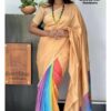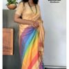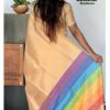 Step into a world of elegance and tradition with the Peach Saree. This exquisite saree features a captivating rainbow gradient along the edge, offering a modern twist on a timeless classic. Crafted to perfection, the peach-colored drape embodies grace and sophistication, making it perfect for any occasion. Paired with vibrant green accessories, this saree radiates charm and elegance. Discover the allure of Indian tradition and style, and order your colorful saree today. Embrace tradition, add a splash of color, and redefine elegance with every drape.