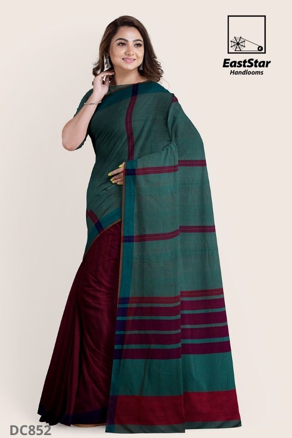 | Description | East Star presents this airy and lightweight Handlooms saree for those special occasions. This natural fabric settles around you as if they are part of your own skin. This Pinkish Red & Dark Sea Green Combination and woven for those who have a classy taste. |