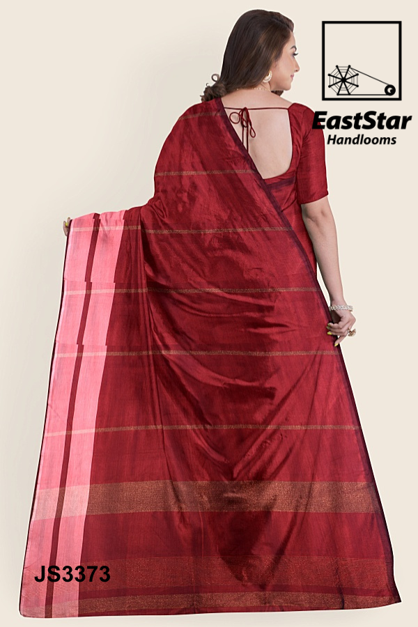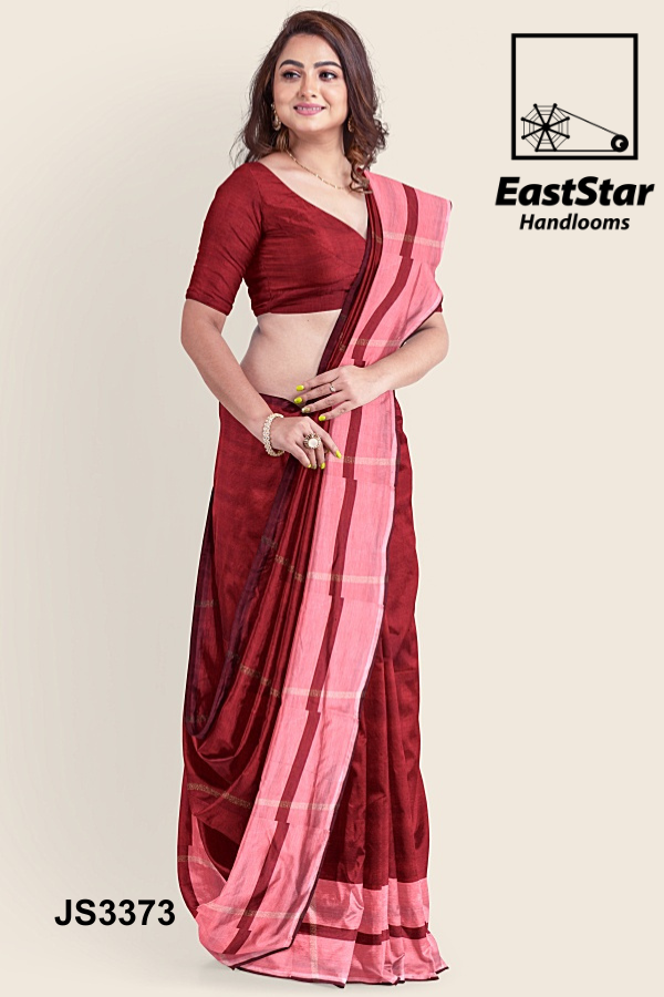 Wrap yourself in timeless elegance with EastStar Handlooms\’ exquisite Red Saree, marked by a vibrant pink border that beautifully contrasts the deep red hue. This ensemble comes complete with a matching red blouse, perfectly crafted to enhance your traditional allure. Adorned with luxurious jewelry, feel the confidence of tradition meeting style as you showcase handpicked elegance. Ideal for any celebration, the EastStar Red Saree JS3373 is your go-to choice for a fashionable statement. Elevate your elegance with this stylish saree that promises unmatched allure and sophistication. Order your red saree with a pink border today and embrace a world of refined beauty.