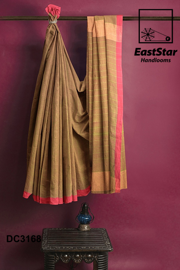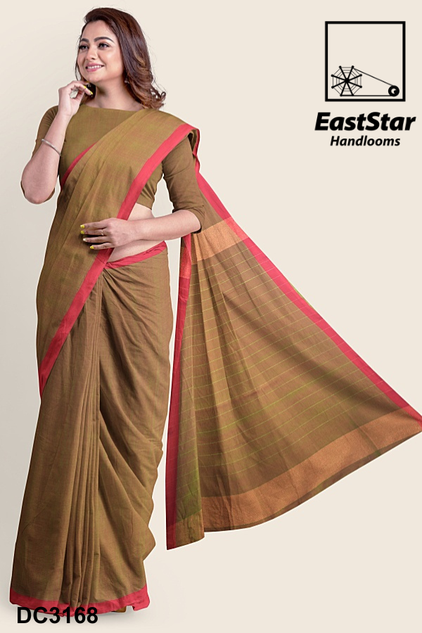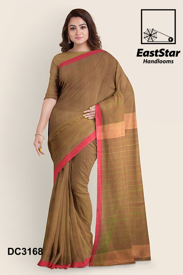 Fabric Pure Cotton Length and Width 6.15 Meters, 1.19 meters Blouse Piece 1 meter in reddish green Weave style Handwoven Description East Star presents this airy and lightweight Handlooms saree for those special occasions. This natural fabric settles around you as if they are part of your own skin. This Coffee Blue & Grey Combination and woven for those who have a classy taste.
