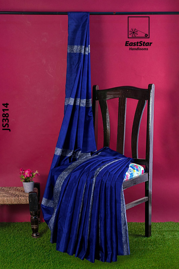Fabric Pure Silk Length and Width 6.15 Meters, 1.19 meters Blouse Piece 1 meter in Royal Blue with silver Weave style Handwoven Description East Star presents this airy and lightweight Handlooms saree for those special occasions. This natural fabric settles around you as if they are part of your own skin