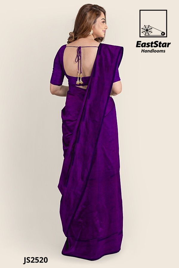 Experience timeless elegance with our Deep Purple Silk Saree. Crafted from luxurious silk, this saree drapes flawlessly around you, accentuating your grace. The matching short-sleeved blouse adds a touch of contemporary charm, making it ideal for weddings and special occasions. Minimal jewelry will complement this striking piece, ensuring you are the focus of every event. Transform your wardrobe with this must-have Elegant Purple Wedding Saree.