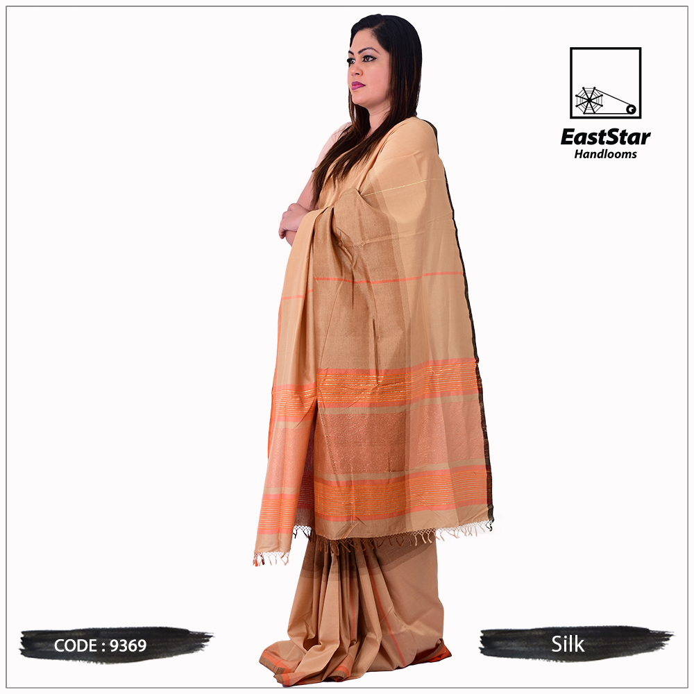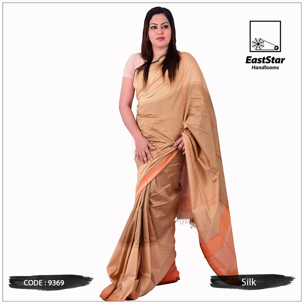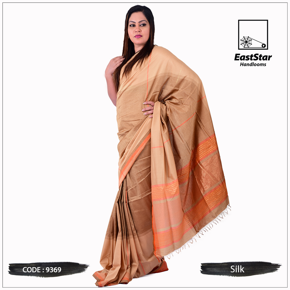 This saree comes with matching fabric Light orange blouse. The blouse in this picture is for photo purpose only.