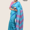 If you are looking for a fine outfit for work, this is another stunning piece! The sunset peach handloom cotton saree is woven with small stripes on pallu, but intricate motifs all over the body. this amazing color with a stripes in front of the saree completes the look. Wear it with handmade Jewelry and sandals to ace the perfect board room look.