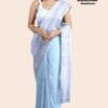 Experience the elegance of tradition with the EastStar Handlooms designer saree. This light-colored saree with subtle vertical stripes flawlessly complements the light green blouse with elbow-length sleeves. Adorned with intricately embellished dangling earrings, this ensemble exudes grace and sophistication. Perfect for any special occasion, this saree effortlessly combines classic beauty with modern style. Order your traditional light color saree today and embrace timeless elegance.