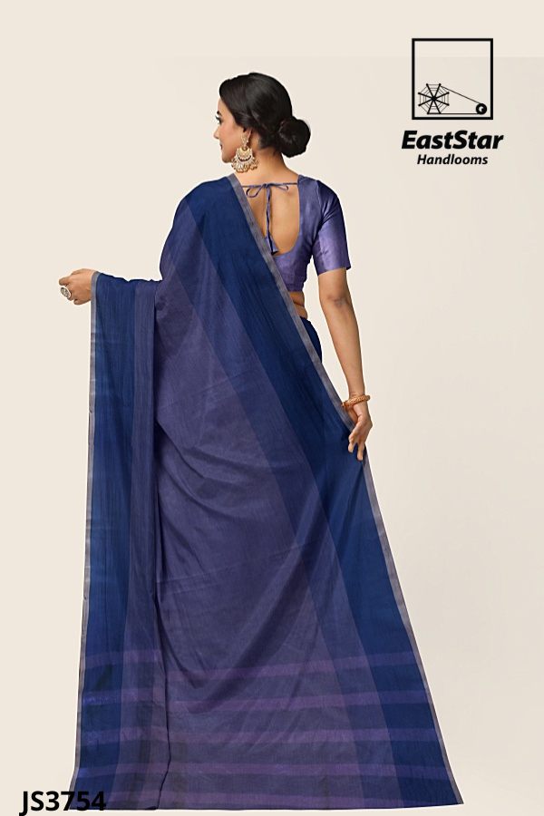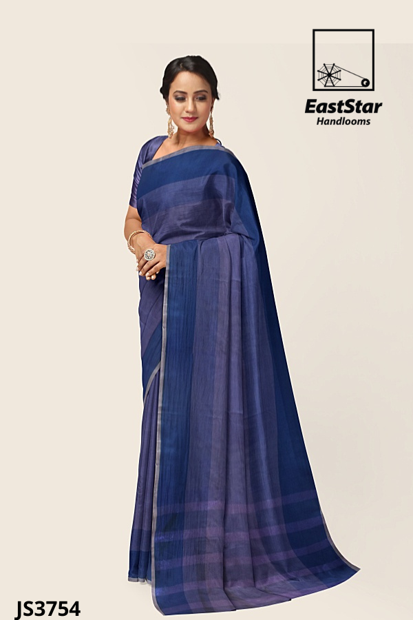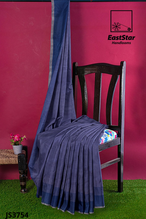 Meet JS3754 from EastStar Handlooms, Violet blue handloom saree with a soft, sheer drape, subtle horizontal stripes, and a refined gray border. Lightweight yet luxurious, this sheer striped handloom saree flatters every silhouette, moving effortlessly from daytime poise to evening grace. Optimized for your search, it embodies the Deep blue handloom saree EastStar Handlooms, Sheer striped saree EastStar Handlooms, and Purple blue saree EastStar Handlooms JS3754 you have been looking for, while also shining as a Gray border handloom saree, a Sheer striped soft handloom saree, and a Gray border soft handloom saree. Add it to your wardrobe now: Buy Violet blue handloom saree, Order sheer striped handloom saree, and Buy gray border handloom saree to elevate every occasion.