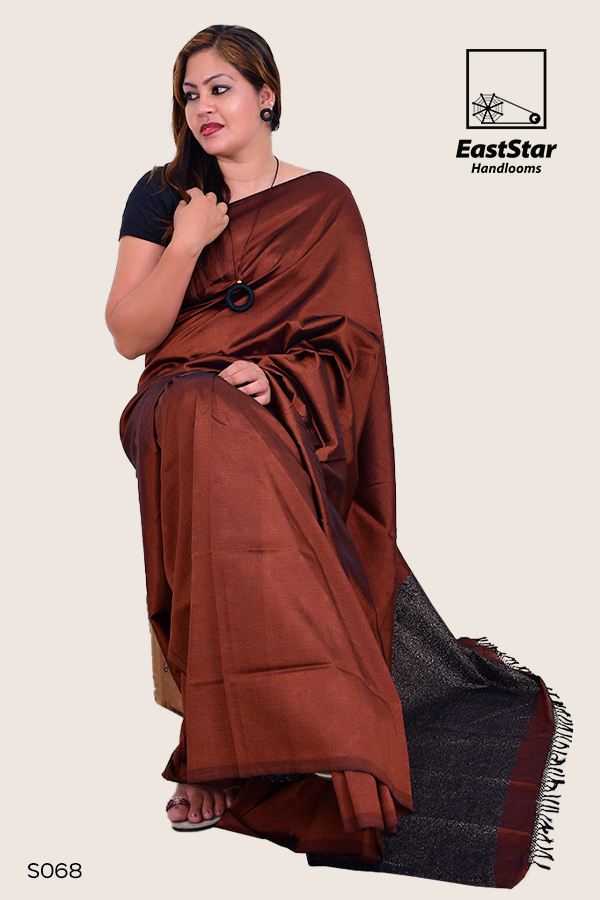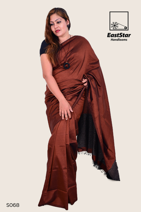 Bring out the fashionista in you by wearing this extravagant designer Handloom silk saree. The shiny silk fabric and the Brown & Black Dust makes it an instant hit at any party. Notice the lovely colors on the full body of the saree, that seems to make it Rich look of the saree. It even comes with a blouse piece in Black to complete your look.