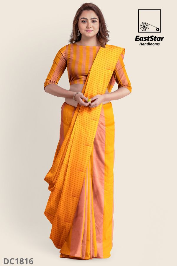 Description East Star presents this airy and lightweight Handlooms saree for those special occasions. This natural fabric settles around you as if they are part of your own skin. This Yellow & Pink Combination and woven for those who have a classy taste.
