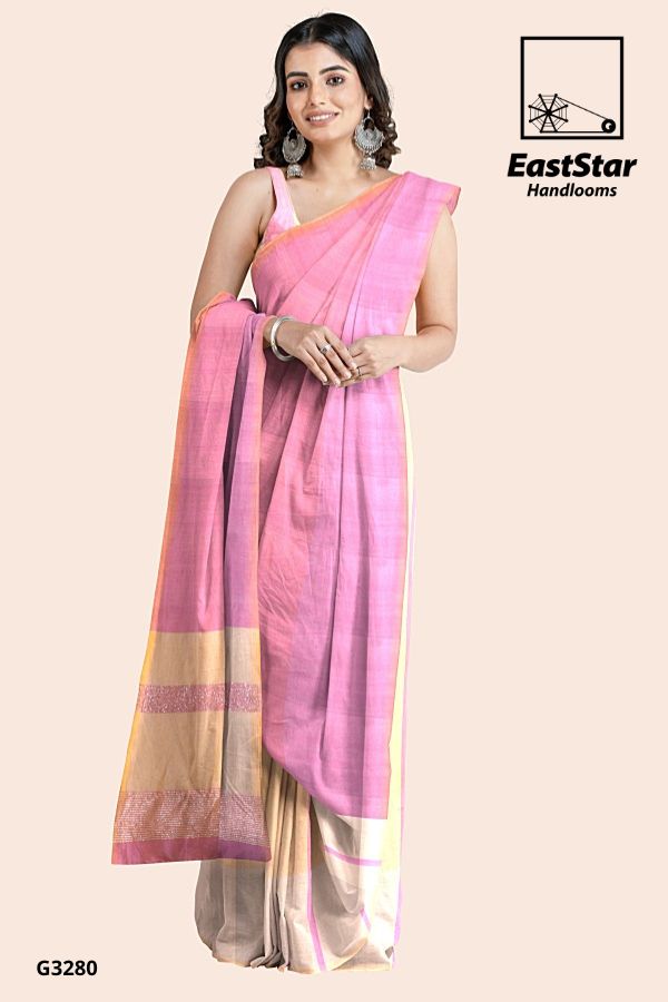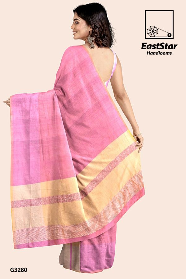 Description East Star presents this airy and lightweight Handlooms saree for those special occasions. This natural fabric settles around you as if they are part of your own skin. This Pink & Yellow  Combination and woven for those who have a classy taste.
