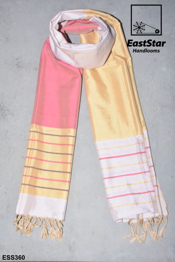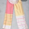 Wrap yourself in the luxurious elegance of our Golden Yellow Scarlet Shawl. This stunning piece gracefully transitions from a vibrant pink to a luminous golden-yellow, making it the perfect accessory for any season. Crafted from silky, shiny fabric, it captures the light beautifully, adding a touch of sophistication to evening wear. The golden-yellow ends with bold pink and brown stripes complete this exquisite design, and the tassels add a playful yet elegant finish. Experience the allure of a multicolor silk scarf, ideal for those seeking vibrant color transitions. Order your tasseled multicolor shawl today and elevate your wardrobe with a piece that embodies both style and versatility.