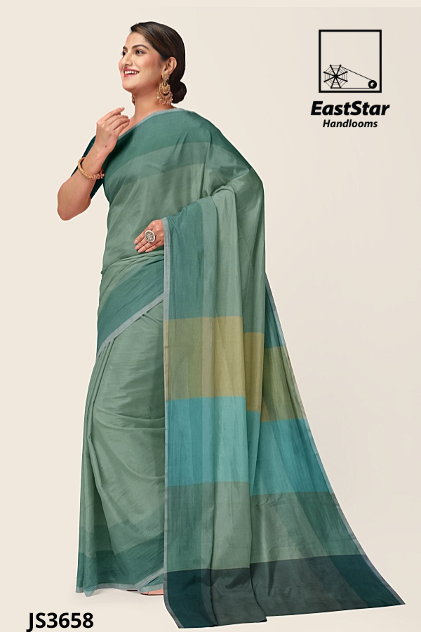 Green and White Indian Saree A080