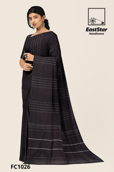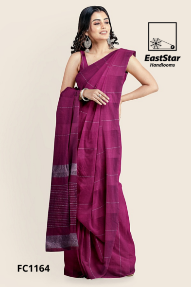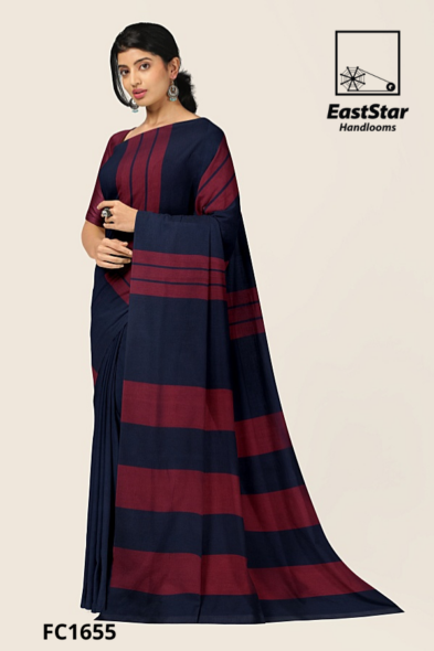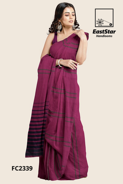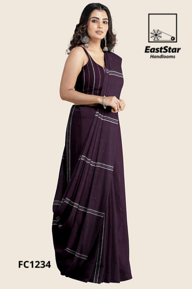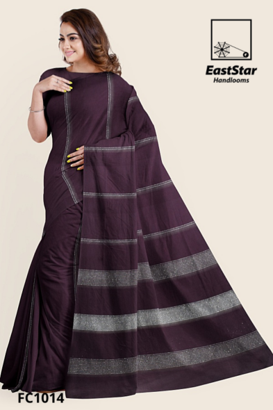 Dark Plum Handloom Printed Cotton Saree PC3017