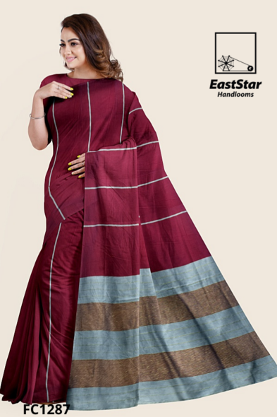 Maroon Metallic Gray Handloom Silk Saree JS3455